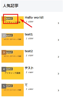 このように、カード型の人気記事サムネイルにカテゴリ名が重ねて表示されるようになります。