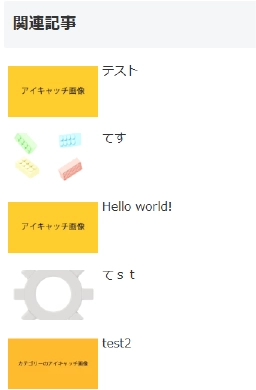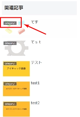 このように、カード型の関連記事サムネイルにカテゴリ名が重ねて表示されるようになります。
